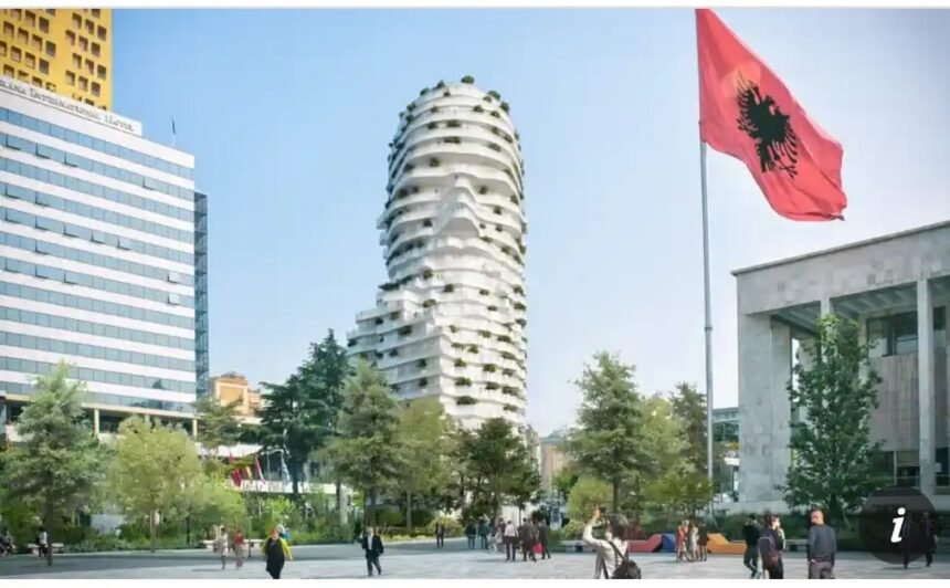 Çfarë bënë më pas arkitektët e Mermer Arch Mound: një rrokaqiell në formë si heroi kombëtar i Shqipërisë.
