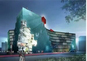 Vizioni surreal është vepër e arkitektëve holandezë MVRDV, të cilët nuk janë të panjohur për ndërtimin e ndërtesave në formë si objekte të reja të mbipërmasave – ose “projekte skulpturore figurative”, siç preferojnë t’i quajnë ato. Tuma e tyre katastrofike e harkut të mermerit në Londër, e cila ndoshta i kushtoi këshillit konservator udhëheqjen e bashkisë lokale, ishte thjesht e fundit në një varg të gjatë krijimesh vizatimore që duket se janë rrëmbyer nga thellësia e një koshi pazari në dyqane shakash. Arkitektët kanë projektuar një muze në formën e flluskave gjigande komike, një depo ruajtjeje arti në formën e një tasi sallate Ikea dhe një kompleks apartamentesh që shpreh fjalën HOME në formën e blloqeve të tij. Por duket se ata kanë ruajtur metaforat e tyre më banale për Ballkanin, ndoshta duke supozuar se më pak nga klientët dhe kritikët e tyre do t’i shohin ndonjëherë ndërtesat personalisht.