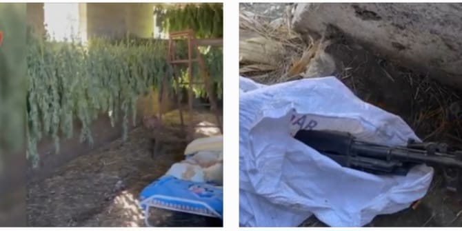 Sekuestrohen 198 kilogramë kanabis në proces tharjeje, 2 armë zjarri kallashnikov, 1 armë gjahu dhe një sasi fishekësh luftarak, që u gjetën gjatë kontrollit të magazinës.